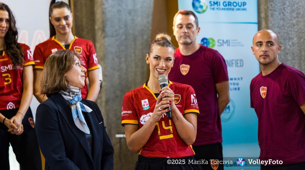 Nel corso dell’evento sono intervenuti l’Assessore ai Grandi Eventi, Sport, Turismo e Moda di Roma Capitale, Alessandro Onorato, il Presidente del Comitato Territoriale FIPAV Roma, Claudio Martinelli, il CEO di SMI Group, main sponsor della Roma Volley, Cesare Pizzuto, il Presidente della Roma Volley, Pietro Mele, e il Direttore Generale, Roberto Mignemi.
