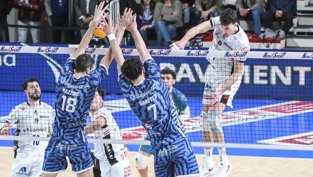 Poi dal quarto set sino all’inizio del tie-break il campo ha mostrato una partita piena di equilibrio. Con due set chiusi ai vantaggi nel terzo la Sonepar ha chiuso 26-24, il Cisterna Volley si è reso la rivincita con l’identico punteggio nel quarto. Nel quinto dopo i primissimi scambi i veneti dopo il 3-3 hanno preso il sopravvento. Che la gara fosse ormai indirizzata è stato compreso da tutti e la formazione di Morato si è definitivamente arresa, dopo l’infortunio che ha colpito Filippo Lanza. Il 15-9 finale ha chiuso la gara