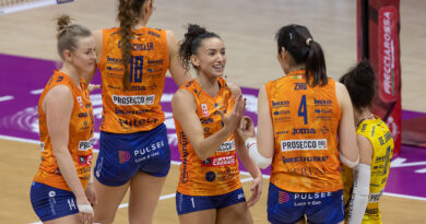 Tra i doppi incontri più intensi, PFU BlueCats Ishikawa Kahoku e Gunma Green Wings si sono spartite i successi. Sabato le padrone di casa hanno vinto 3-1 (25-16, 25-22, 23-25, 25-22): Melissa Valdes 23 punti (3 ace, 2 muri), la thailandese Thatdao Nuekjang 21 (5 muri, 2 ace). Ma l’opposta polacca Olivia Rozanski ha brillato con 37 punti (4 ace, 1 muro). Domenica Rozanski ha replicato con 27 punti (3 muri, 2 ace) nel 3-1 Gunma (23-25, 25-22, 25-15, 25-20), supportata dai 5 muri decisivi della bulgara Nasya Dimitrova. PFU scivola quinta (16-10, 53 punti, due gare in meno); Gunma sale sesta (16-12, 47).