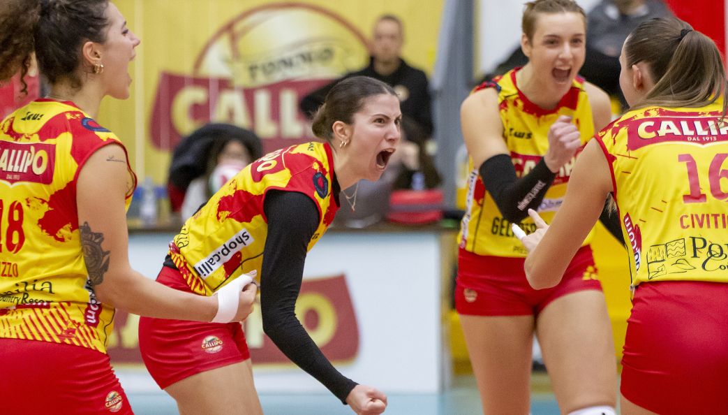 (Saverio Albanese per iVolleymagazine.it) La Tonno Callipo Vibo Valentia supera l’insidioso ostacolo rappresentato dalle giovani virgulte del Volleyrò Casal De Pazzi, che nei primi due parziali hanno lottato con tenacia e caparbietà contro la corazzata giallorossa, trascinata dalle poderose conclusioni di Alexandra Baleva (20 punti complessivi, tre dei quali dalla linea dei nove metri). Nella terza e quarta frazione, però, la maggiore caratura tecnica Chiara Scacchetti e compagne ha avuto il suo peso specifico per chiudere la contesa (25–12 e 25–15).