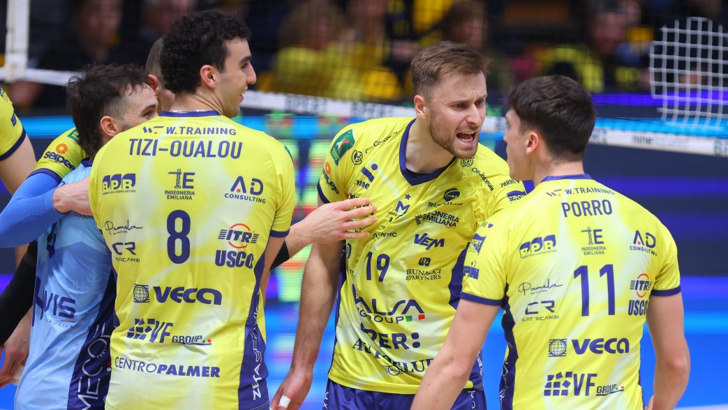 Prevale l’equilibrio in avvio di terzo parziale, Mati a segno e gialloblù avanti 8-7. Modena mantiene il proprio vantaggio, muro di Porro su Bovolenta e 19-16. La compagine di Giuliani, trascinata da un super Porro e dal punto finale di Davyskiba, riapre il match: 25-20 e 1-2. Modena continua a spingere, pipe di Porro e 6-5 dopo i primi scambi. I gialloblù insistono con la spinta del PalaPanini, muro di Tizi-Oualou su Mandiraci e 14-9. Il vantaggio aumenta ulteriormente con il muro di Porro su Bovolenta, 19-13. Uno strepitoso Buchegger in battuta e il sigillo finale di Tizi-Oualou regalano anche il quarto set ai padroni di casa, 25-16 e 2-2. Nel quinto e decisivo parziale, Modena vince 17-15 e conquista gara 1: sabato alle ore 18 a Piacenza gara 2.
