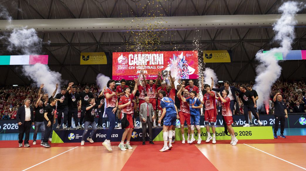 Gas Sales Bluenergy Volley Piacenza entra nella storia pallavolo del Vecchio Continente, la Cev Volleyball Cup è sua. Vinti i primi due set dominando l’SVG Luneburg è scattata la festa in un PalabancaSport sold out. Ci sono vittorie che vanno oltre il risultato, oltre il campo, oltre il punteggio. Vittorie che diventano storia. È una di queste la notte vissuta da Gas Sales Bluenergy Volley Piacenza, capace di superare per 3-0 (25-20, 25-17. 25-21) l’SVG Lüneburg anche nella gara di ritorno della Finale di CEV Volleyball Cup e conquistare il primo, indimenticabile successo europeo della propria giovane ma ambiziosa storia.